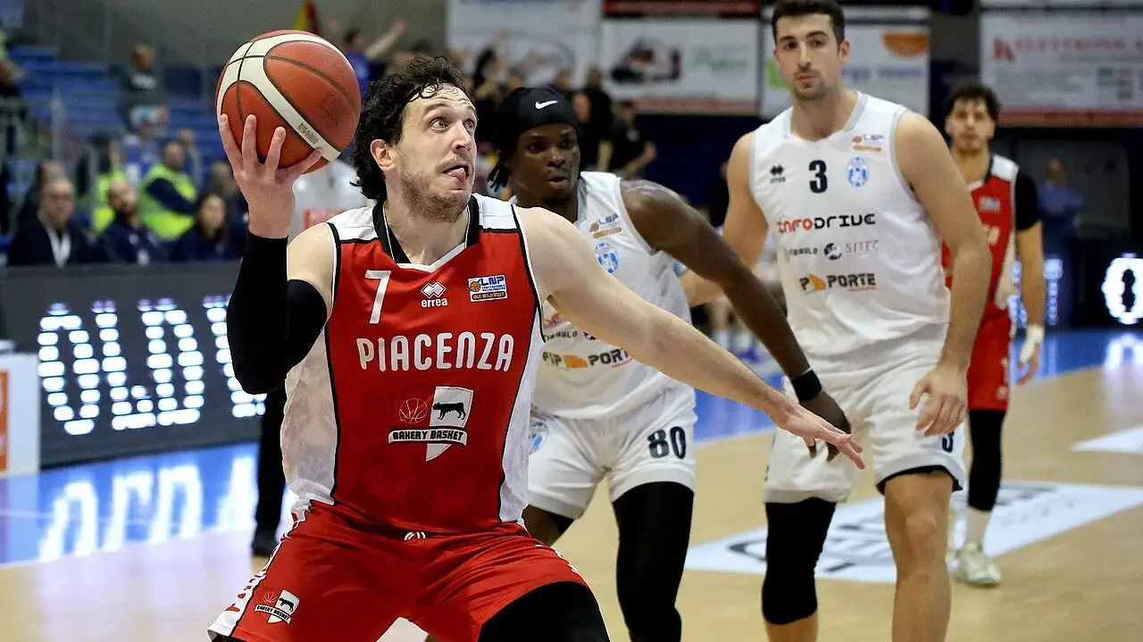 Piacenza non si spaventa, nonostante il tifo pressante del pubblico di casa, sul campo della quinta forza del campionato. Nel terzo quarto si segna relativamente poco e il 40-40 resta fisso per diversi minuti, prima che Jasaitis da una parte (due triple) e Ricci dall’altra ingaggino un duello ad altissima intensità. Il numero 7 biancorosso colpisce anche da fuori e la Bakery prende coraggio, portandosi in vantaggio 52-56 a fine terzo quarto grazie ai due punti di Giannone.