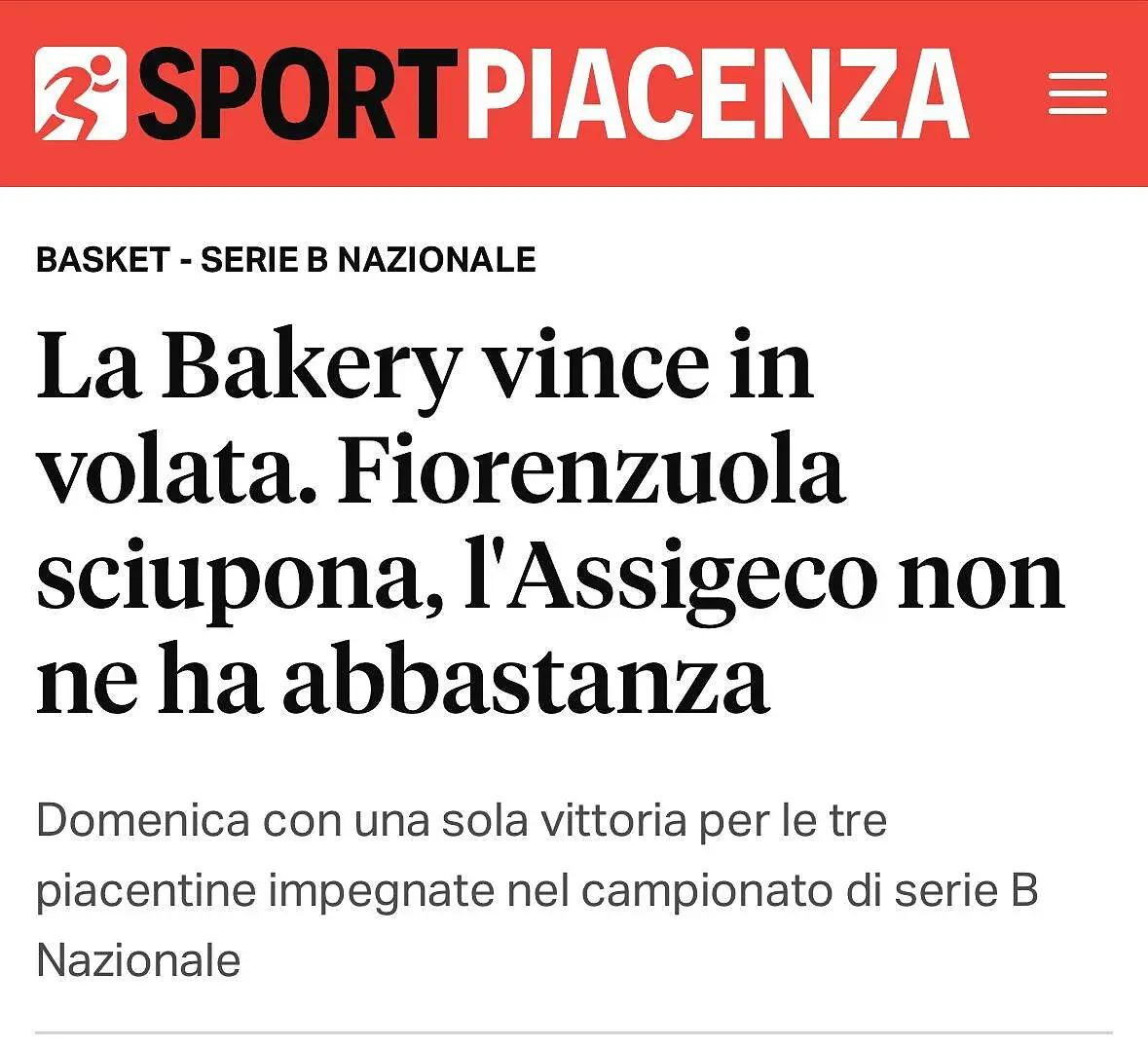 Rassegna stampa di lunedì 15 dicembre 2025 su sportpiacenza.it