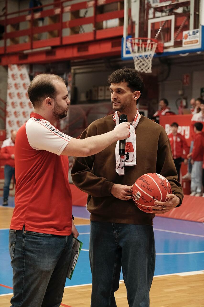 La medaglia d’argento agli ultimi Mondiali di atletica di Tokyo accolta dalla presidente di Bakery Piacenza, Caterina Zanardi, che ha donato a Dallavalle un pallone da basket autografato da tutti i giocatori biancorossi. Bel momento anche con i tifosi di Spazio Biancorosso, che hanno invece regalato una sciarpa della squadra al triplista delle Fiamme Gialle.